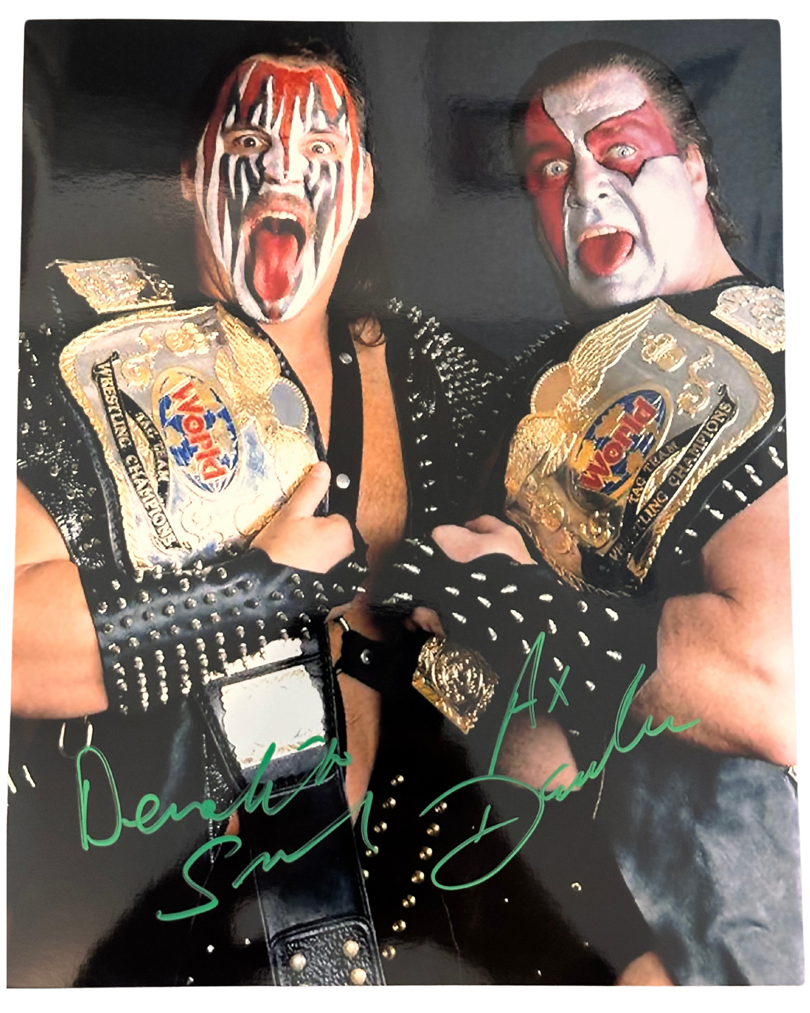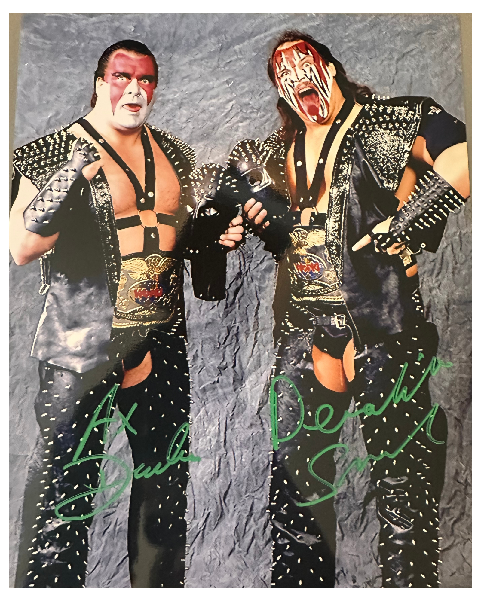 This signed 8x10 is more than just a photo; it's a portal to a time when Demolition dominated the ring. Let their raw power and intensity ignite your passion for the sport.