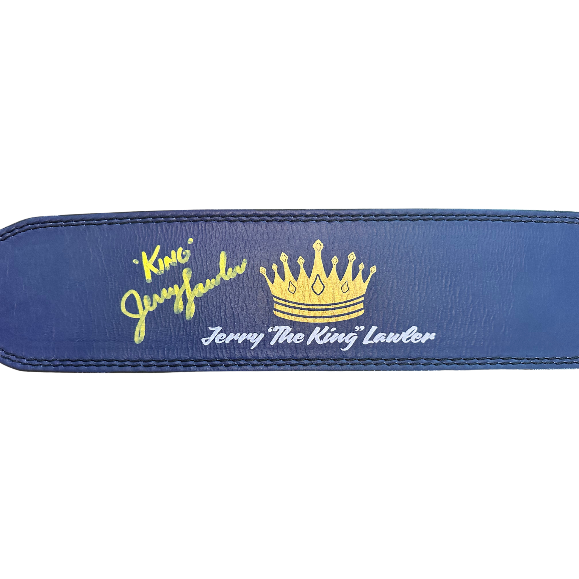Own a Personalized Piece of Memphis Royalty: Custom Jerry "The King" Lawler Signed Weight Belt (Blue with Yellow Signature)