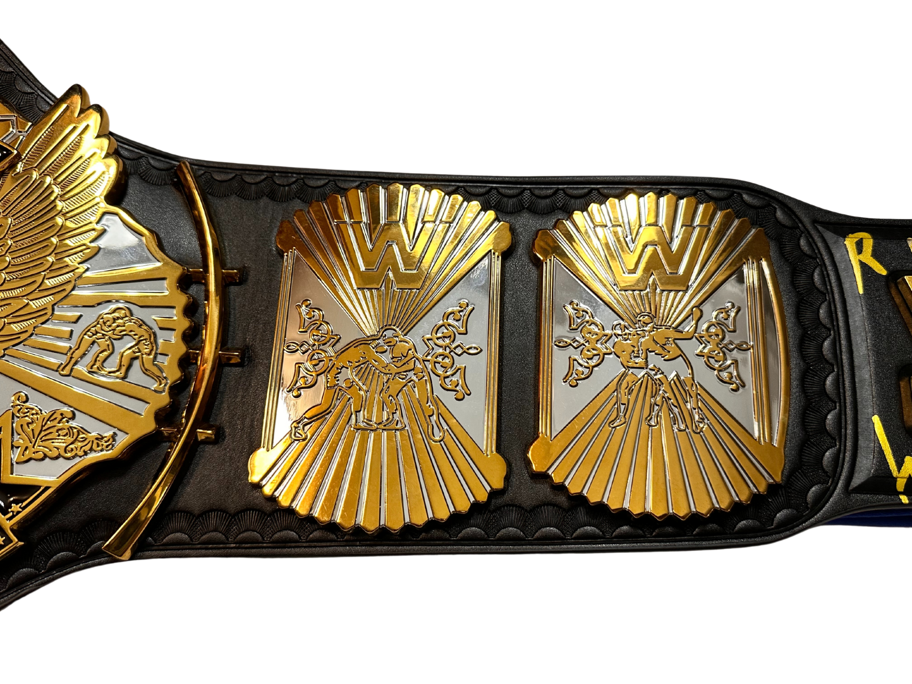 Introduced in 1988 following Hulk Hogan's monumental WrestleMania III victory over Andre the Giant, the Winged Eagle Championship calls back to a bygone era. Pay homage to one of the most prolific Superstars in sports entertainment history with this distinct edition of the classic prize. Featuring a sleek black strap and gold and silver plating, this Signature Series Championship Replica title belt is a finely crafted homage to his illustrious legacy and comes hand-signed by Hulk Hogan. Carve out a space in your WWE memorabilia collection for this one-of-a-kind title and let Hulkamania run wild forever!