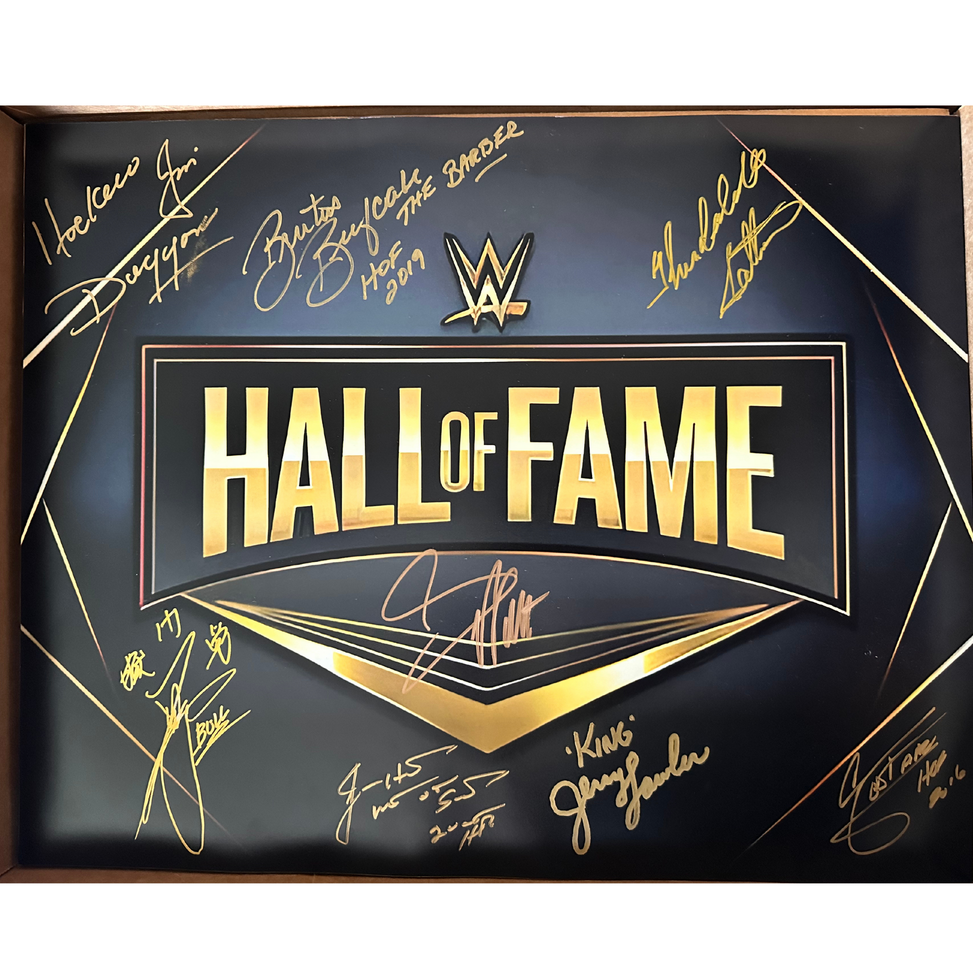 Signed Black WWE Hall of Fame Photo 16x20 8 Signatures