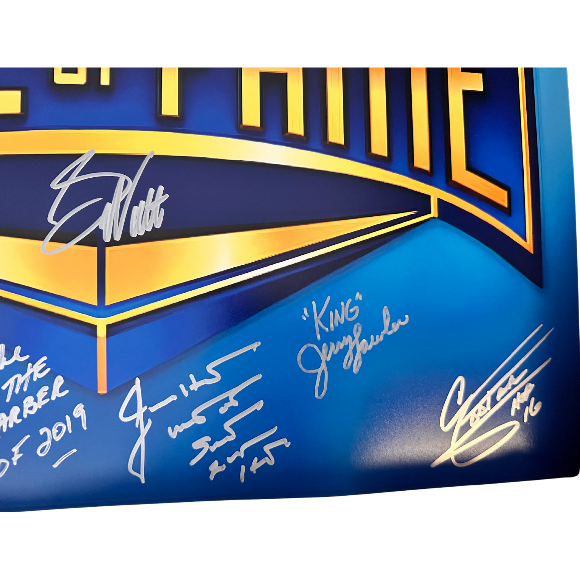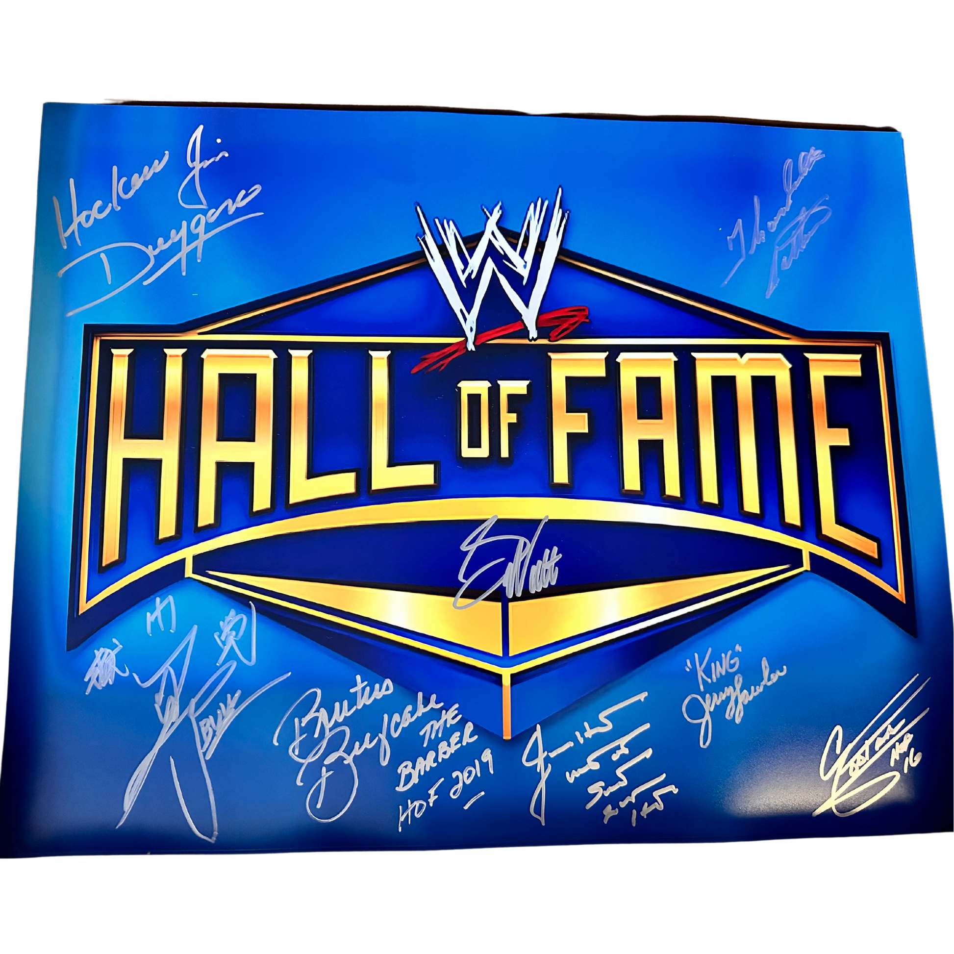 Signed Blue WWE Hall of Fame Photo 16x20 8 Signatures