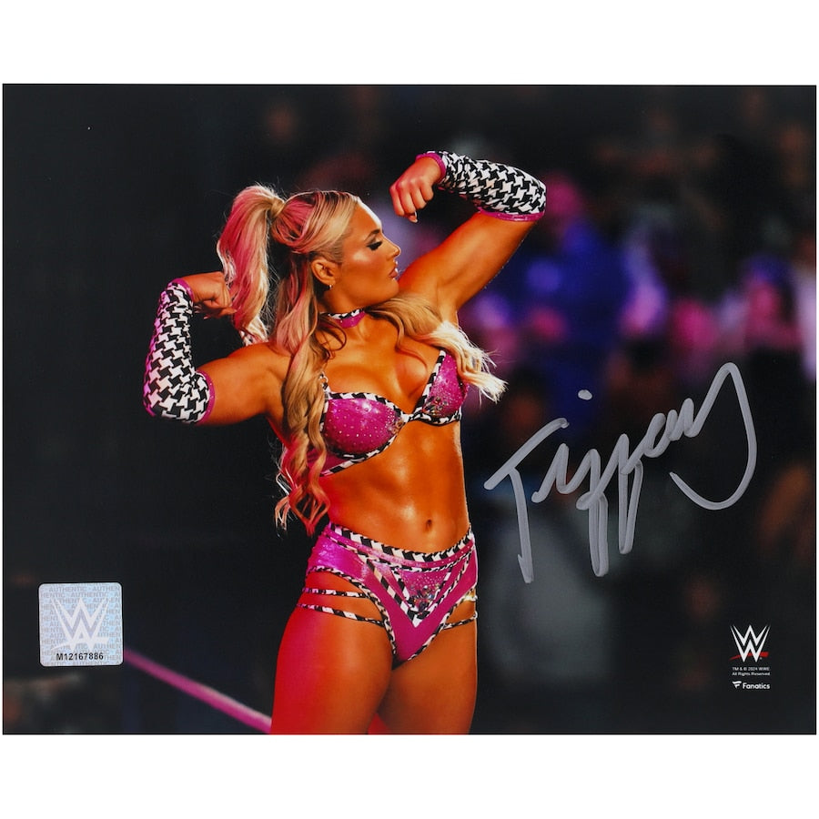 Elevate your collection of WWE memorabilia with this Tiffany Stratton autographed 8" x 10" Flexing On Ropes Photograph. It features a bold image of the iconic Superstar and their distinct signature. This photo also includes an individually numbered, tamper-evident hologram that can be verified online to certify its authenticity.